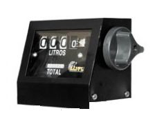 Em aço galvanizado, com totalizador, capa e botão.