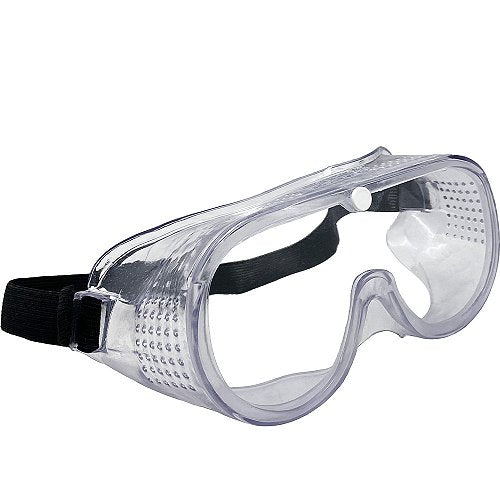 Armação confeccionada em PVC, com lente em policarbonato incolor, possui sistema de ventilação indireta através de perfurações ou 04 válvulas laterais, com elástico para ajuste ao rosto do usuário.